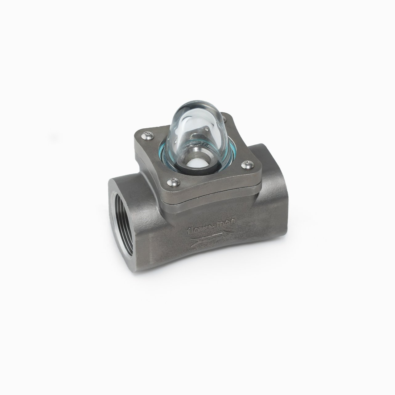 Where the observation of fluid characteristics is required, typically in plant settings involving lubricant or coolant flow to compressors, engines and pumps, our spout and flap double window sight glass indicators are ideal.